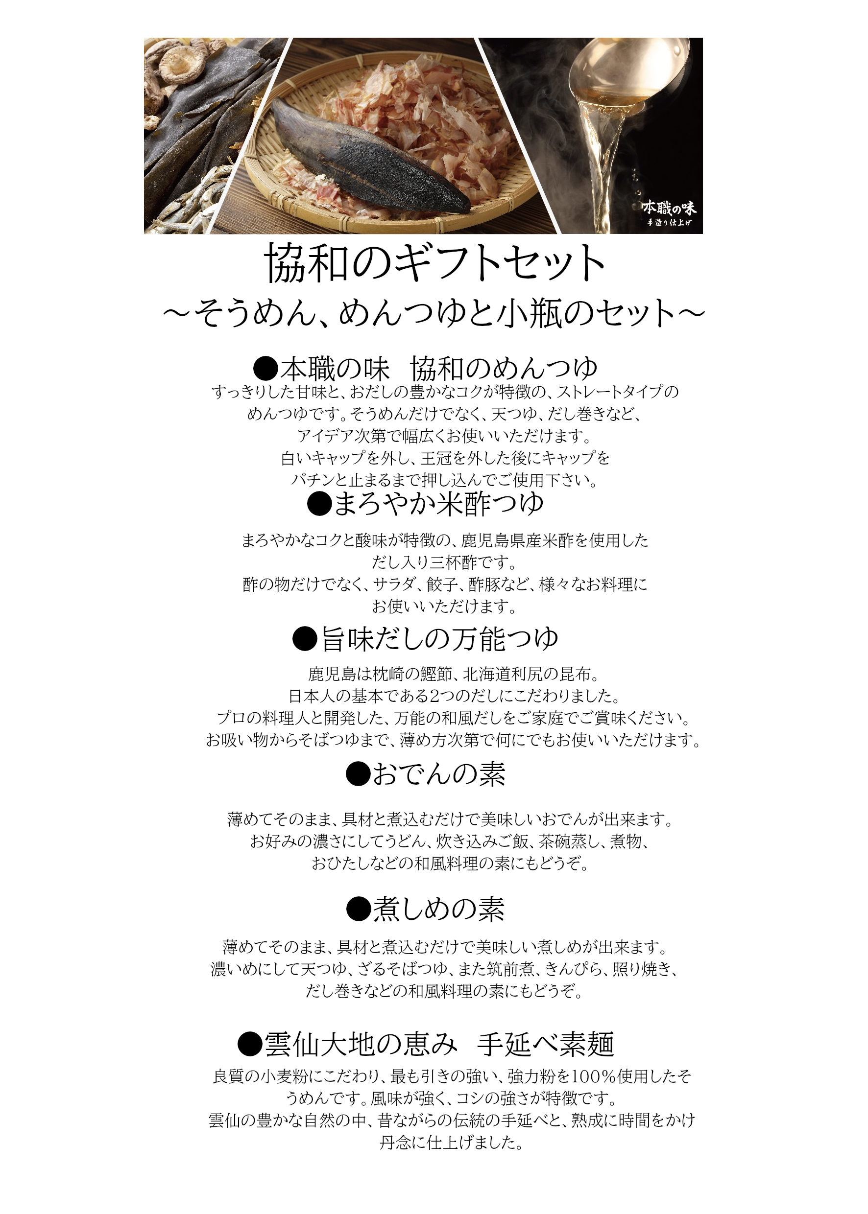 協和のギフトセット:そうめん、めんつゆと小瓶のセット